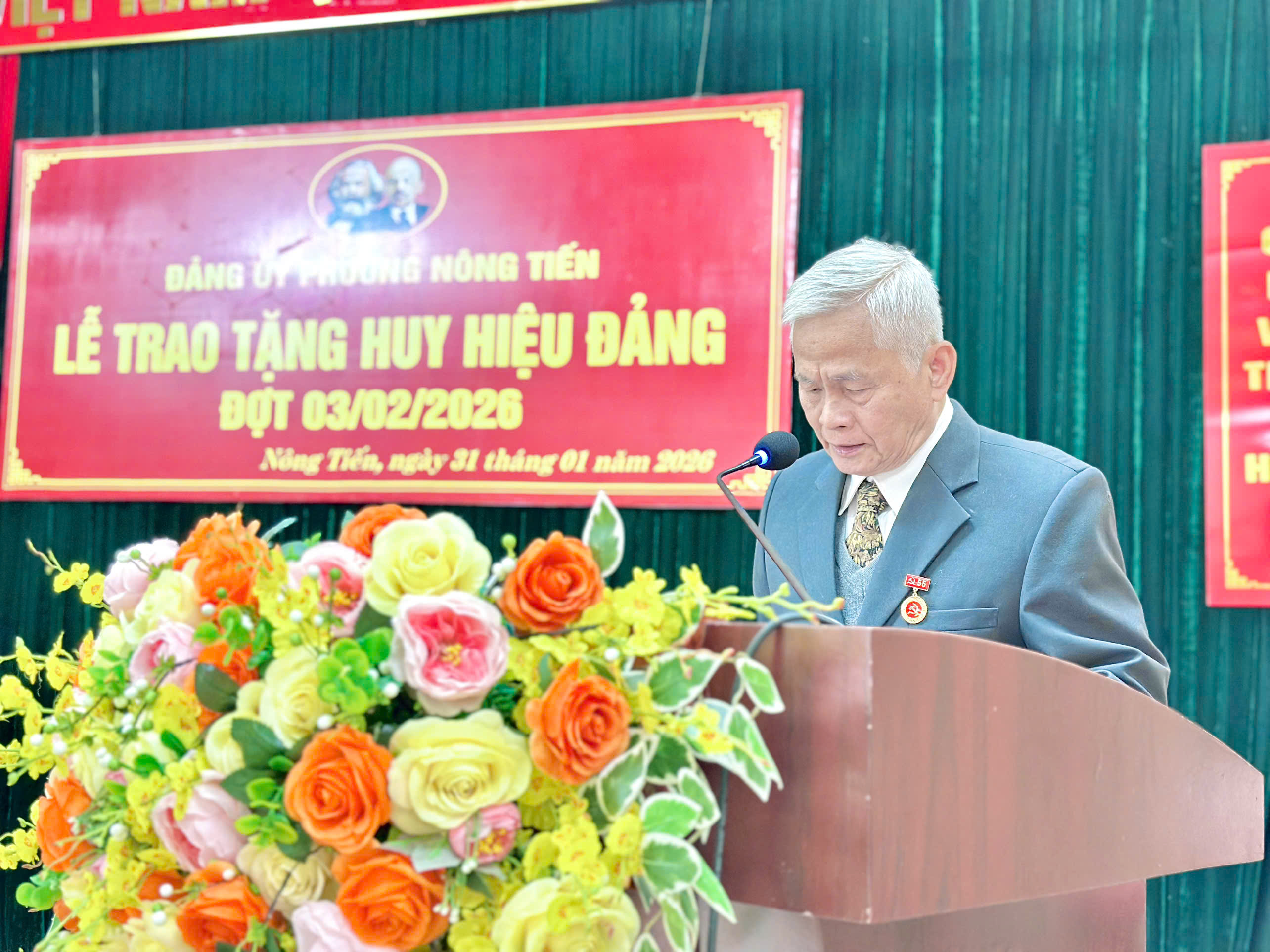 Trân trọng gắn Huy hiệu Đảng và phát biểu chúc mừng các đảng viên lão thành, đồng chí Nguyễn Khánh Lâm, Tỉnh ủy viên, Giám đốc Sở Tư pháp khẳng định: Huy hiệu Đảng không đơn thuần là sự ghi nhận về số năm tuổi Đảng, mà là biểu tượng cao quý chứng nhận cho quá trình phấn đấu, rèn luyện và cống hiến không ngừng nghỉ của các đồng chí đảng viên đối với sự nghiệp cách mạng của Đảng và dân tộc.