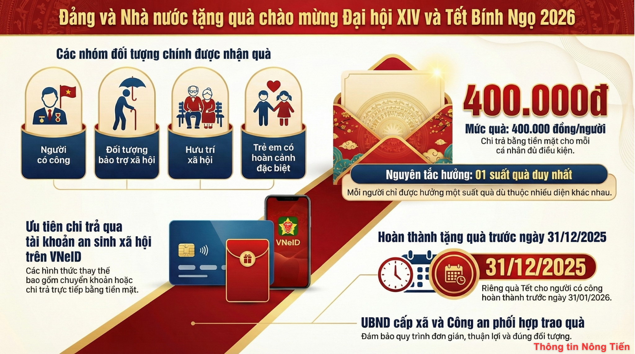 Về thời gian thực hiện, Nghị quyết yêu cầu việc tặng quà hoàn thành chậm nhất trong ngày 31 tháng 12 năm 2025.
