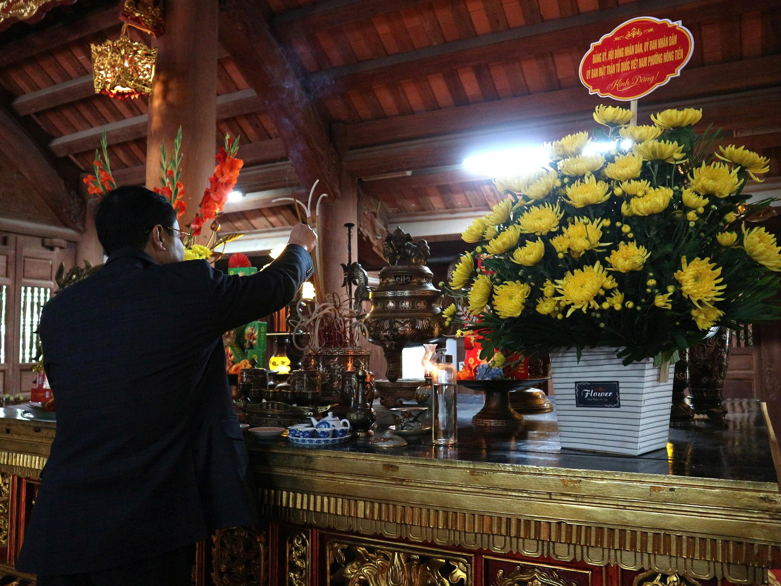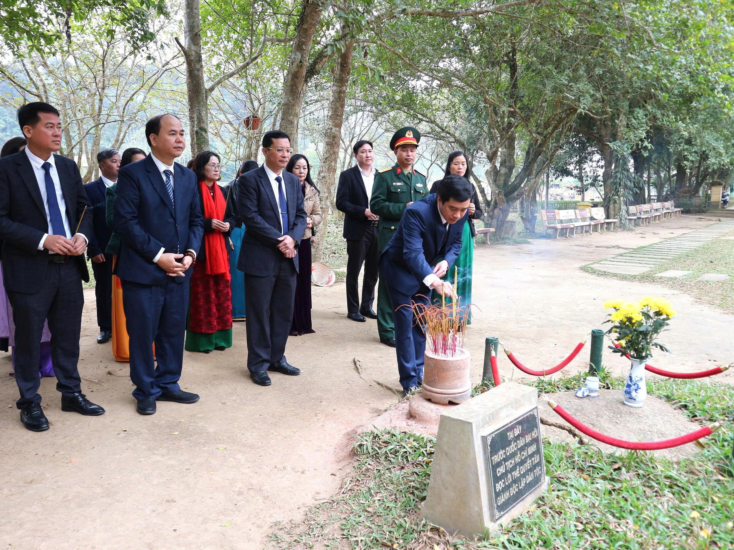 Dâng hương tại khu tưởng niệm các vị tiền bối cách mạng ở Tân Trào