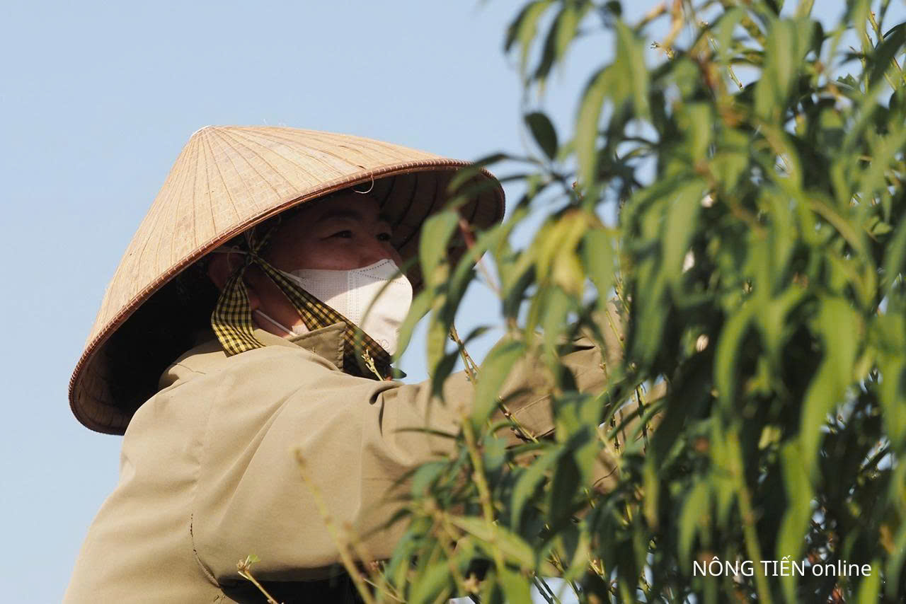 “Năm nay là năm nhuận nên thời điểm tuốt lá muộn hơn so với mọi năm. Tuốt lá phải đúng kỹ thuật, tuốt từng lá một, không được tuốt ngược chiều, nếu không sẽ làm rụng mắt đào. Đây là công đoạn quyết định việc đào có nở hoa đúng Tết hay không.”