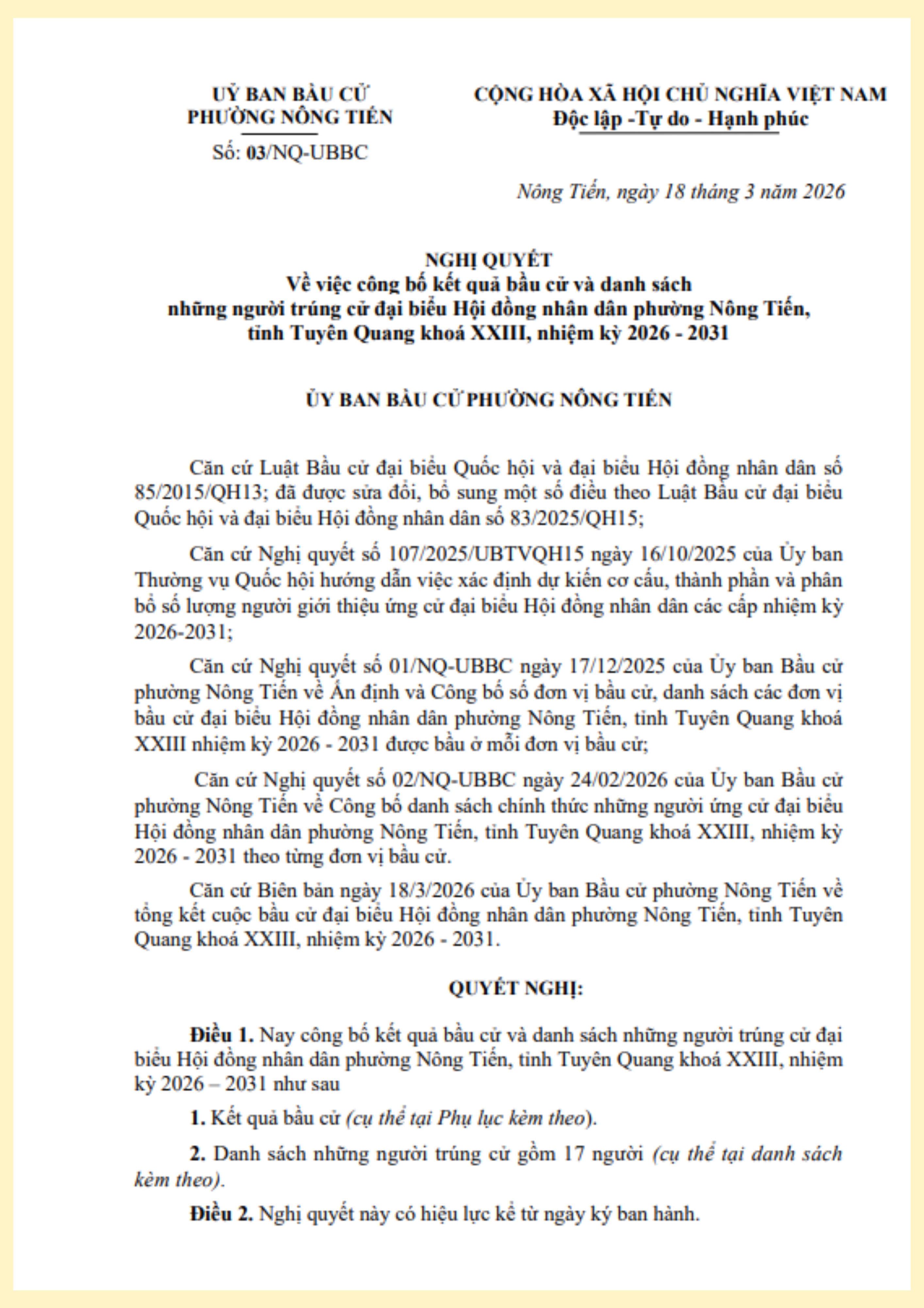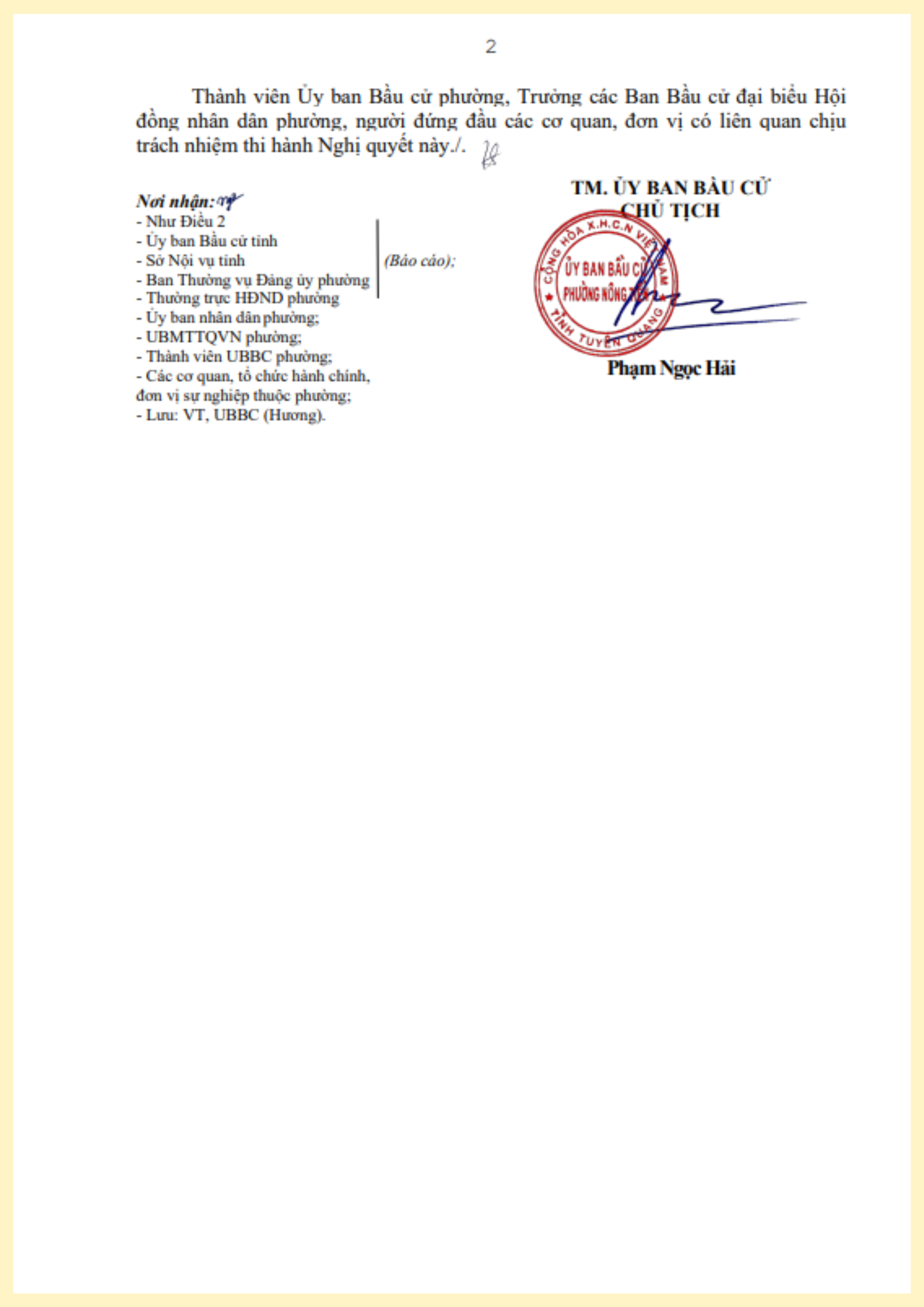 Ủy ban bầu cử phường Nông Tiến