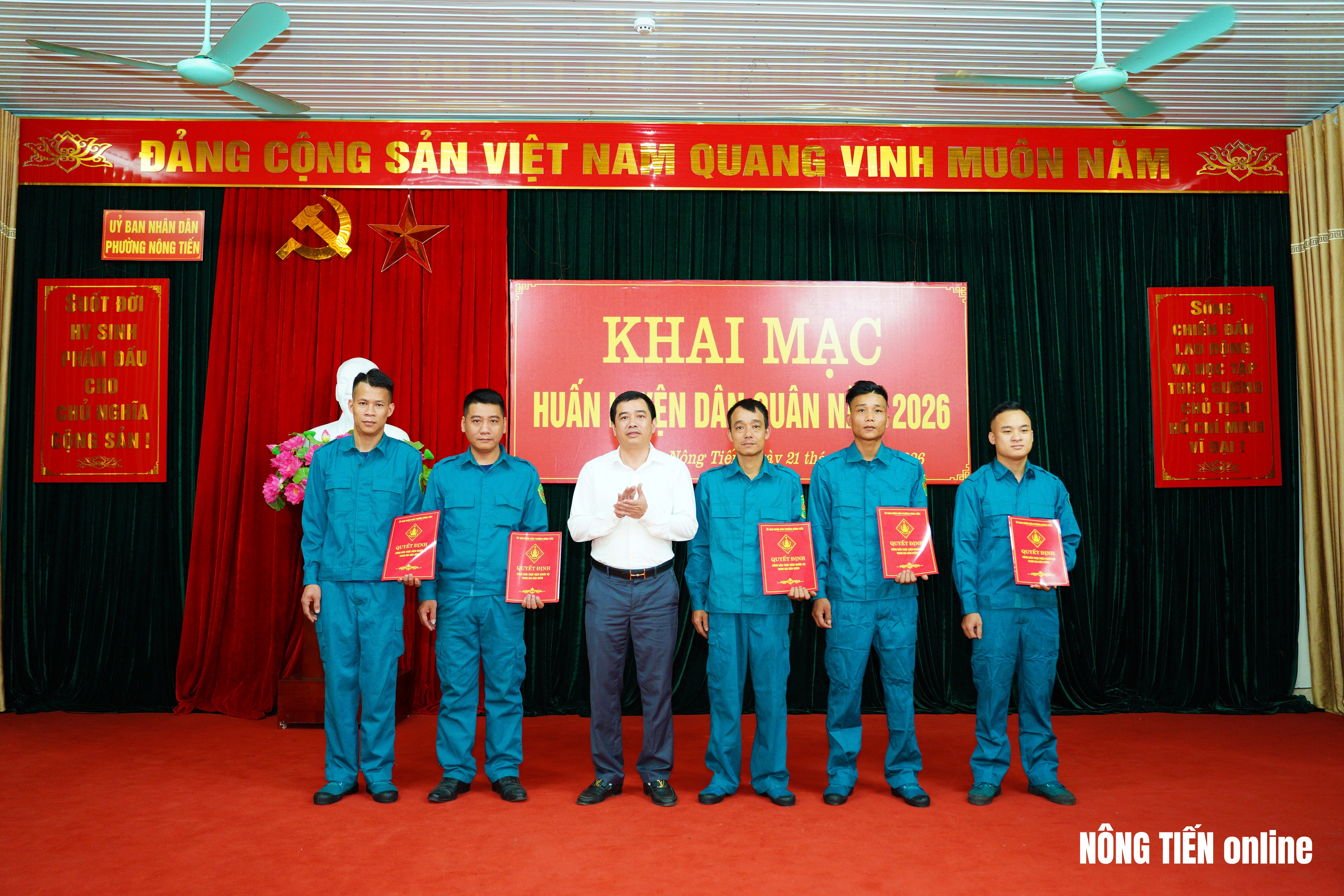 Nhằm tạo đòn bẩy thực hiện thắng lợi nhiệm vụ quân sự, quốc phòng địa phương, ngay trong khuôn khổ buổi lễ, Ban Chỉ huy Quân sự phường đã phát động và tổ chức ký kết giao ước thi đua năm 2026. Với khí thế quyết tâm cao, các lực lượng dân quân đã thống nhất cam kết thực hiện các mục tiêu trọng tâm: Nâng cao chất lượng giáo dục chính trị tư tưởng; 100% quân số tham gia huấn luyện đạt yêu cầu (trong đó tỷ lệ khá, giỏi đạt trên 75%); duy trì nghiêm chế độ trực sẵn sàng chiến đấu; xung kích đi đầu trong phòng, chống thiên tai, cứu hộ cứu nạn. Đặc biệt, quyết tâm xây dựng đơn vị nền nếp, chính quy, tuyệt đối không để xảy ra vi phạm kỷ luật nghiêm trọng. Việc ký kết giao ước thi đua đã tạo sự thống nhất cao độ trong nhận thức và hành động, khơi dậy niềm tự hào, ý chí "quyết chiến, quyết thắng" của lực lượng vũ trang phường Nông Tiến, tạo tiền đề vững chắc để địa phương hoàn thành xuất sắc nhiệm vụ quốc phòng - quân sự năm 2026.