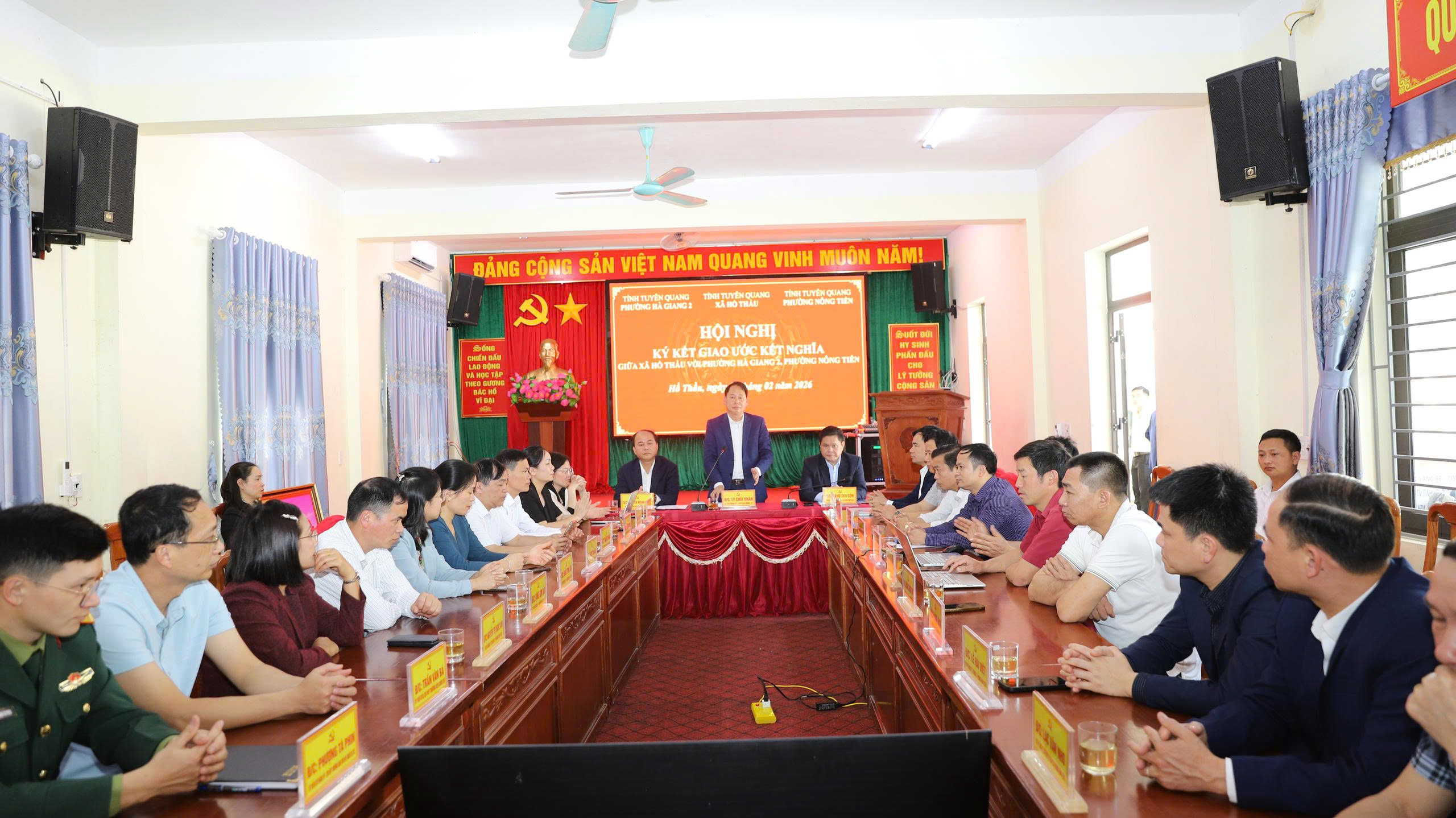 Tham dự và trực tiếp ký kết biên bản giao ước có các đồng chí lãnh đạo đại diện 03 địa phương, gồm: Đồng chí Vàng Seo Cón, Ủy viên Ban Thường vụ Tỉnh ủy, Bí thư Đảng ủy, Chủ tịch HĐND phường Hà Giang 2; Đồng chí Nguyễn Mạnh Hùng, Phó Bí thư Thường trực Đảng ủy phường Nông Tiến; Đồng chí Lý Chòi Nhàn, Bí thư Đảng ủy, Chủ tịch HĐND xã Hồ Thầu. Cùng dự có các đồng chí trong Thường trực Đảng ủy, HĐND, UBND, Ủy ban MTTQ và lãnh đạo các cơ quan, đơn vị của 3 địa phương.