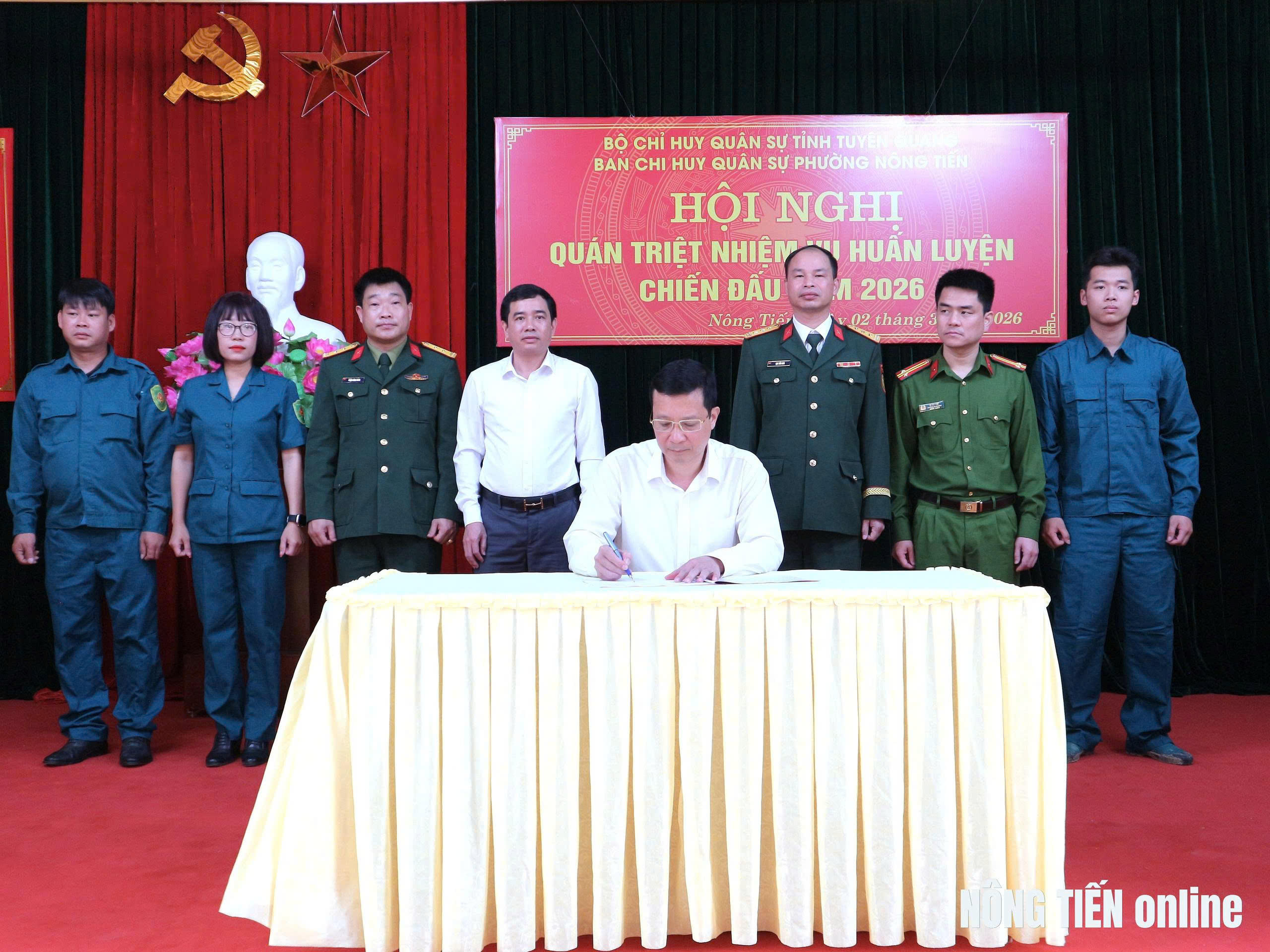 Để hiện thực hóa quyết tâm chính trị, trong khuôn khổ hội nghị, đại diện các bộ phận thuộc Ban Chỉ huy Quân sự phường đã tiến hành ký kết giao ước thi đua năm 2026. Những bản giao ước được ký kết chính là lời thề sắt son của những "người lính Cụ Hồ" ở cơ sở, quyết tâm đoàn kết một lòng, hoàn thành xuất sắc nhiệm vụ huấn luyện chiến đấu, góp phần bảo vệ vững chắc quê hương và tạo tiền đề vững chắc cho sự thành công của cuộc bầu cử đại biểu Quốc hội và HĐND các cấp trên địa bàn.
