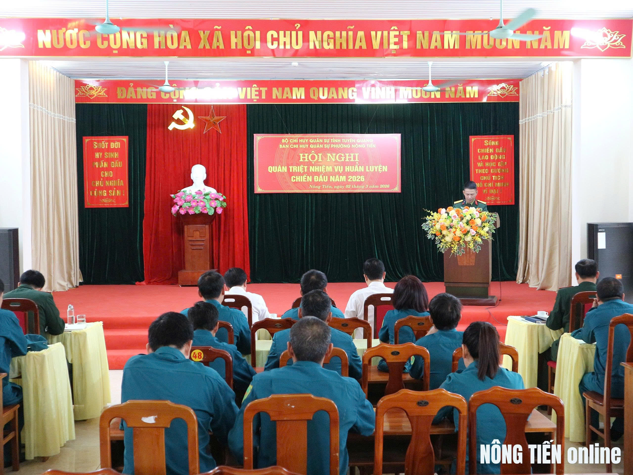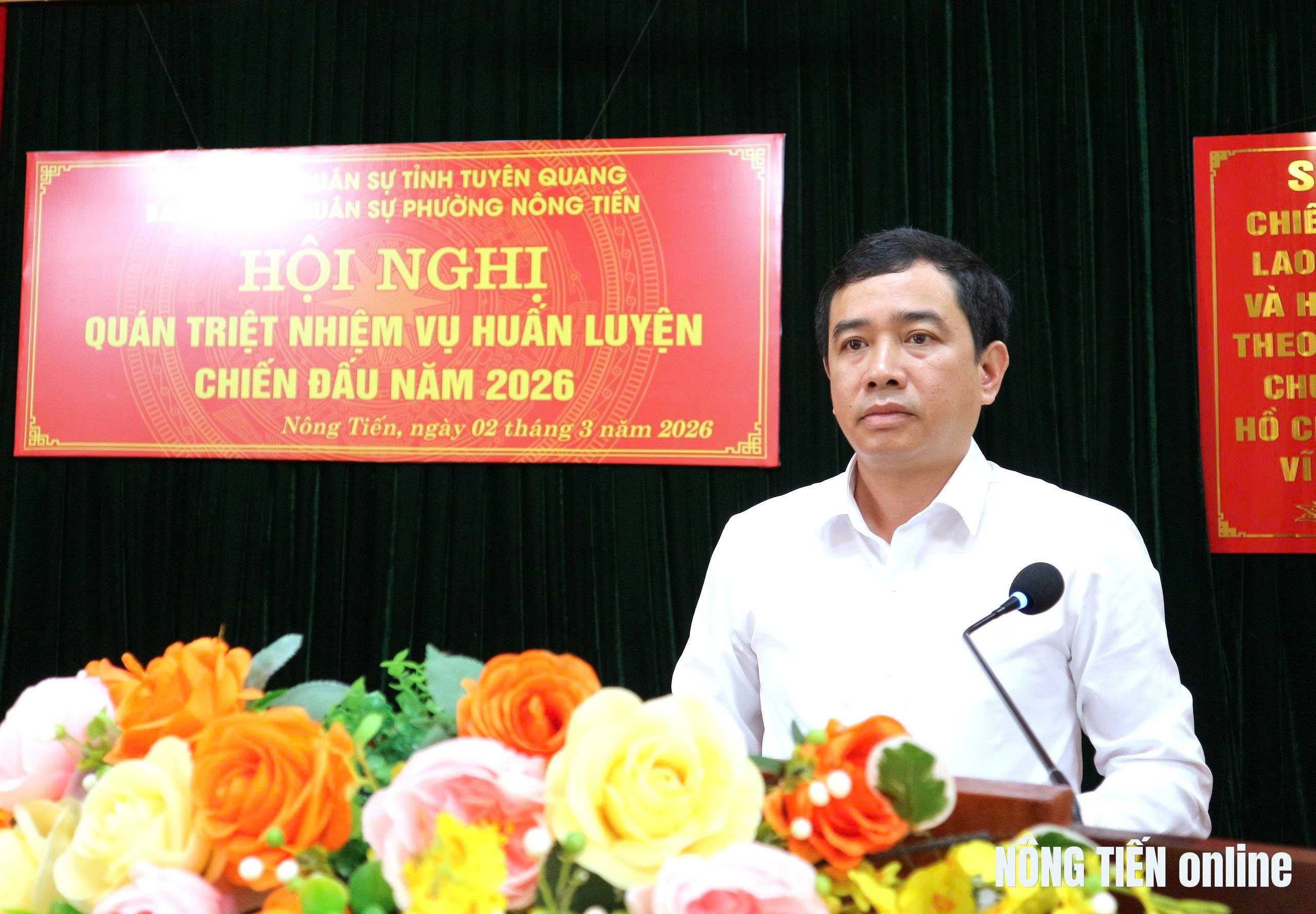 Phát biểu giao nhiệm vụ tại hội nghị, đồng chí Phạm Ngọc Hải, Chủ tịch UBND phường ghi nhận và biểu dương những nỗ lực của lực lượng vũ trang phường trong thời gian qua. Đồng chí yêu cầu trong mùa huấn luyện 2026, từng cán bộ, chiến sĩ phải nêu cao tinh thần trách nhiệm, khắc phục khó khăn, luôn sẵn sàng chiến đấu. Đồng chí nhấn mạnh: "Lực lượng vũ trang phường không chỉ là lực lượng nòng cốt trong công tác quốc phòng địa phương, mà còn phải là lực lượng tiên phong trong việc xây dựng "thế trận lòng dân" vững chắc; sẵn sàng cơ động xử lý kịp thời, hiệu quả các tình huống, tuyệt đối không để bị động, bất ngờ trước mọi âm mưu của các thế lực thù địch".