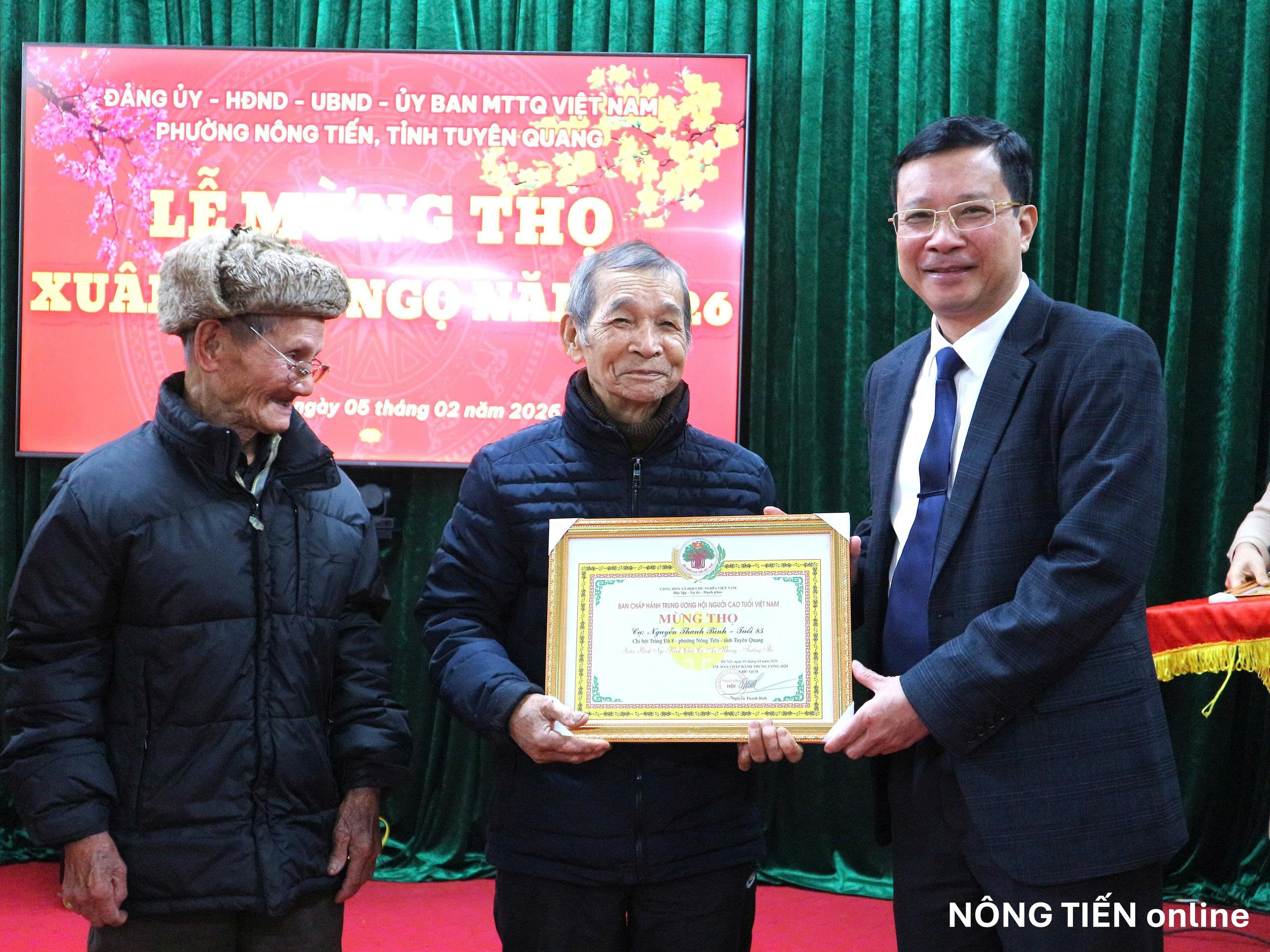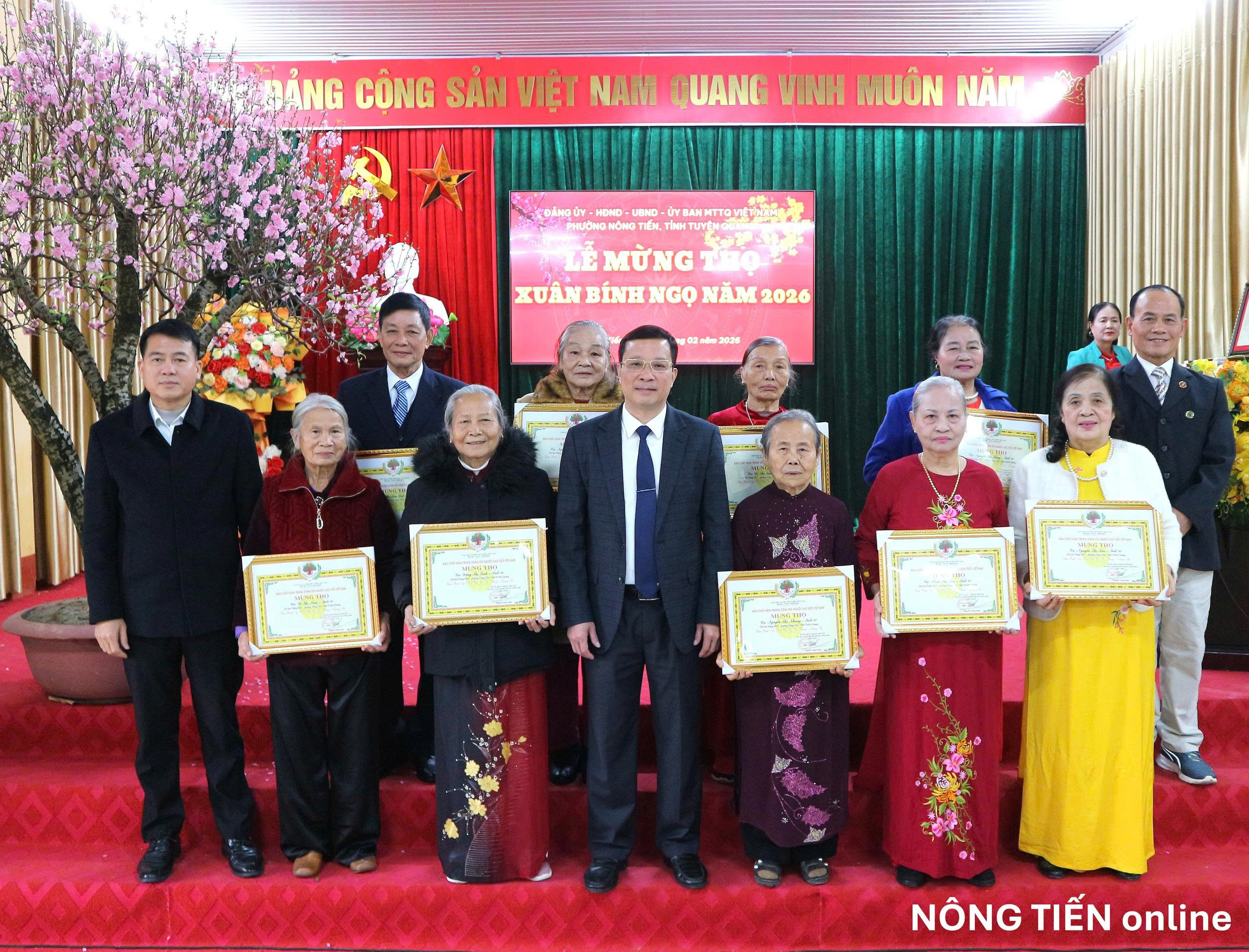 Tại buổi lễ, trong không khí phấn khởi mừng Đảng, mừng Xuân, các đồng chí lãnh đạo phường đã trân trọng trao giấy mừng thọ và những phần quà ý nghĩa tận tay các cụ. Buổi lễ diễn ra trang trọng, đầm ấm, thực sự trở thành ngày hội của lòng hiếu nghĩa, lan tỏa nét đẹp văn hóa truyền thống ngàn đời của người Việt trên mảnh đất Nông Tiến.