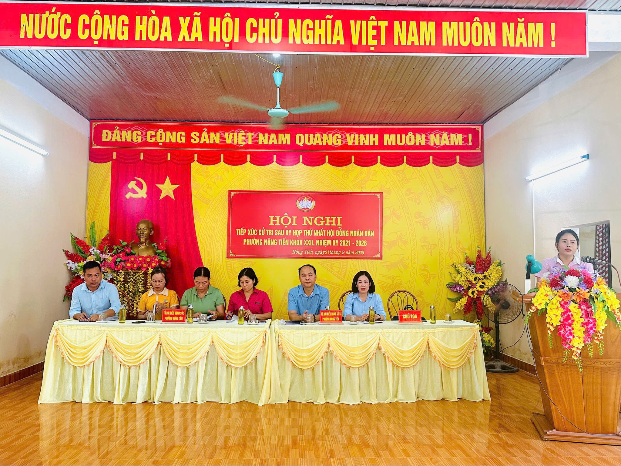 Chiều 16-9, tại Nhà văn hoá Tổ 10, Uỷ ban MTTQ phường Nông Tiến phối hợp với HĐND phường tổ chức Hội nghị tiếp xúc cử tri. Dự Hội nghị có các đồng chí: Nguyễn Thanh Hà, Bí thư Đảng ủy, Chủ tịch Hội đồng nhân dân phường; Phạm Ngọc Hải, Phó Bí thư Đảng ủy, Chủ tịch UBND phường; đồng chí Trần Thị Thu Hà, Uỷ viên Ban Thường vụ Đảng ủy, Chủ tịch Ủy ban MTTQ Việt Nam phường; các đại biểu Tổ số 2 HĐND; lãnh đạo MTTQ, các tổ chức chính trị – xã hội; lãnh đạo các phòng chuyên môn thuộc UBND phường; Bí thư chi bộ, tổ trưởng dân phố, trưởng Ban công tác Mặt trận, Tổ an ninh cơ sở và các cử tri các tổ dân phố 3,10, Chanh 1.